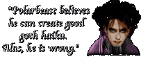 be over in the corner bitching and moping. be lounge, goth or sci-fi? By all means your tired, your poor, your huddled 5-7-5 syllabic rhythms yearning to be displayed. The Bad Lounge Haiku of Polarbeast The Bad Sci Faiku of Polarbeast The Bad Haiku of Our Visitors ![]() |