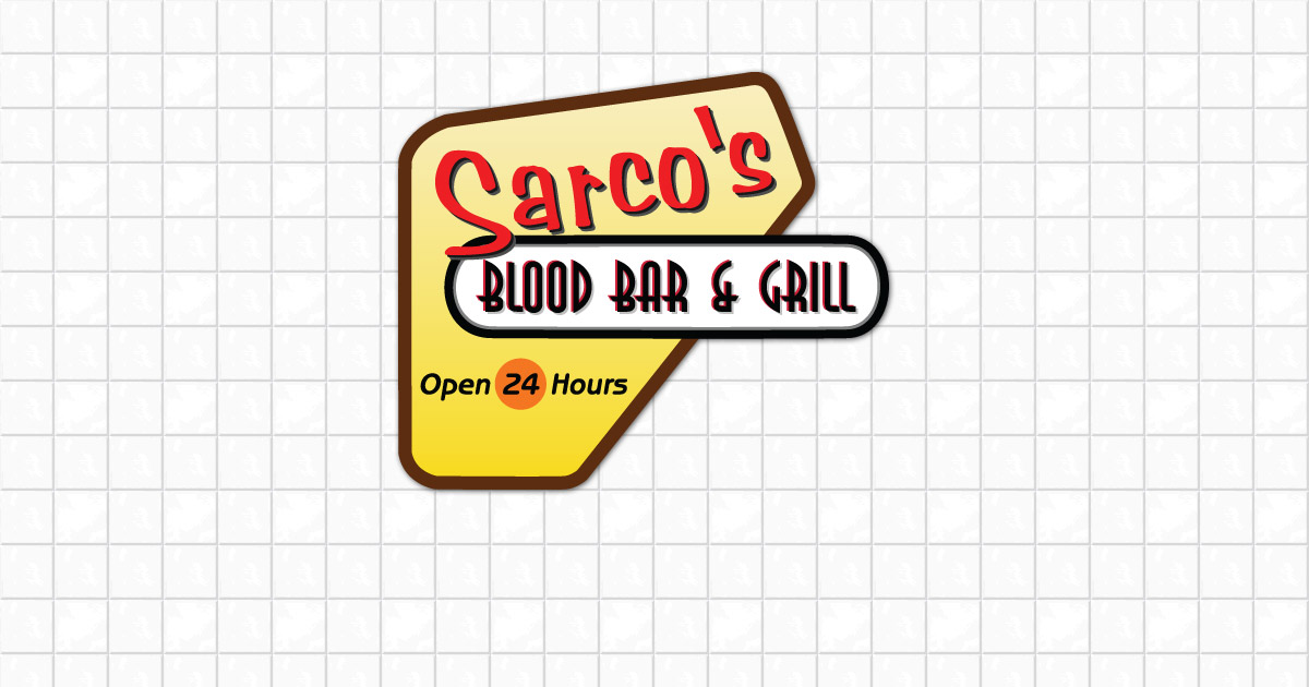 The sun's down. Your stomach's growling. Your elongated incisors are itching for a good meal. It's time to pull off the highway; give the hearse a rest and stop into Sarco's Blood Bar & Grill, America's favorite alternative diner! We're always open.